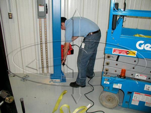 Once a column was up, it was time to drill holes into the floor to use for the anchor bolts.